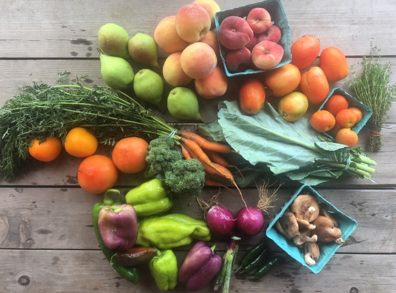The Fruit Share contains fresh, local, seasonally grown fruit from neighboring orchards and fruit farms. Some of the berries are no-spray or organic depending on the crop.
